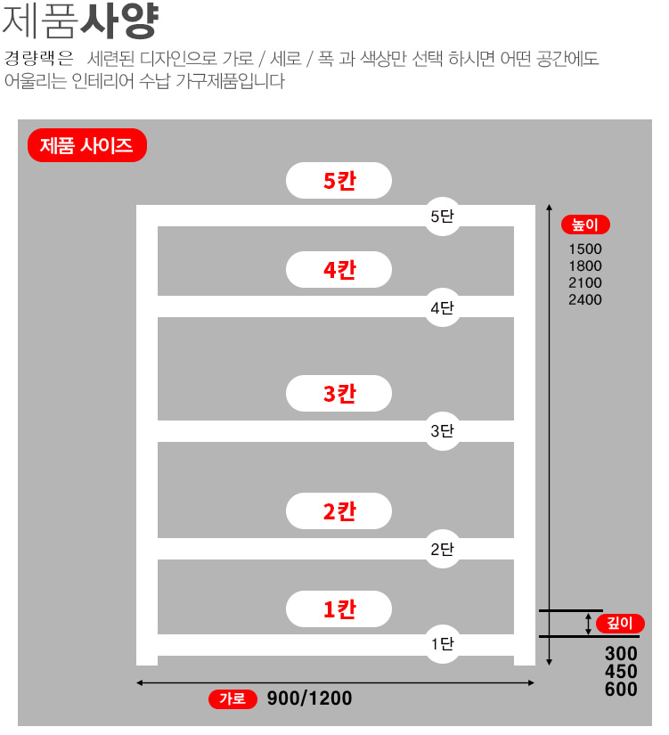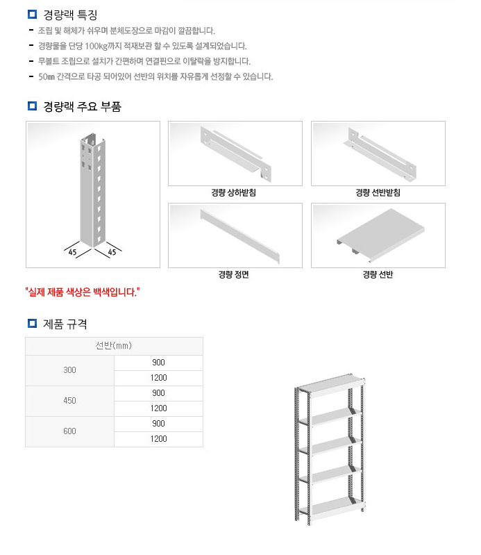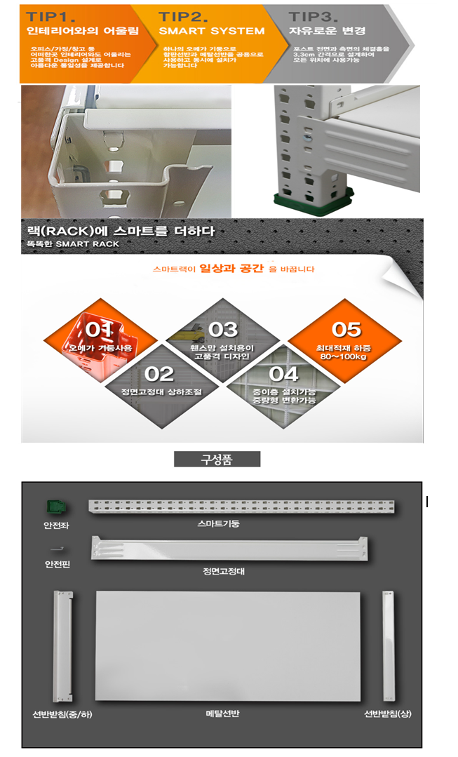 경량물을 단당 100kg까지 적재보관 할 수 있도록 설계되었습니다.